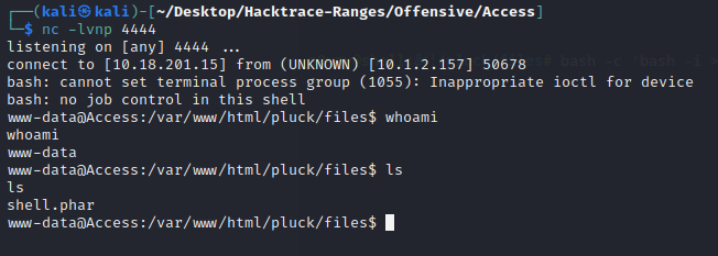 Shell was uploaded, i quickly boot up netcat listener and entered my revshell payload in the webshell