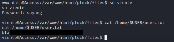 viente@Access:/var/www/html/pluck/files$ cat /home/$USER/user.txt