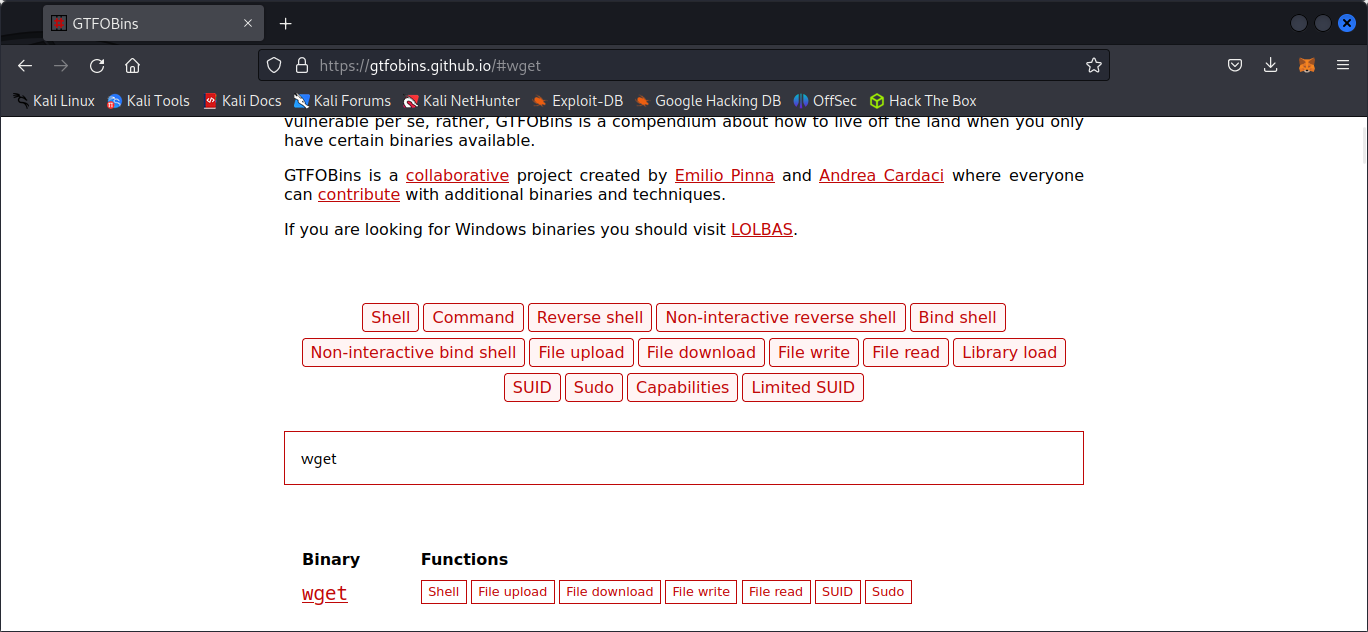 From that information i know that viente has permission to run /usr/bin/wget. Next i check gtfobins and found several function that can be abused to escalate privileges